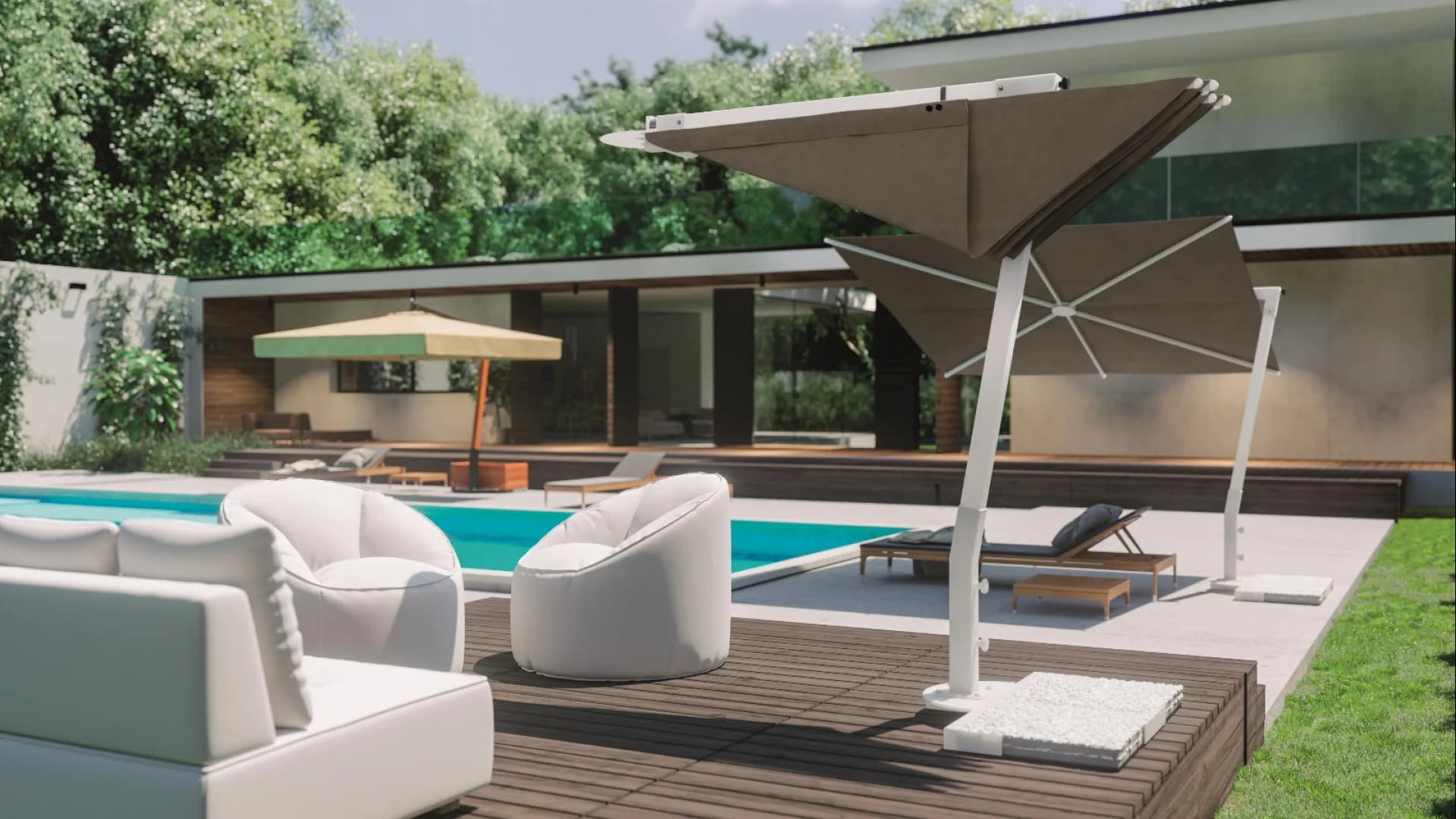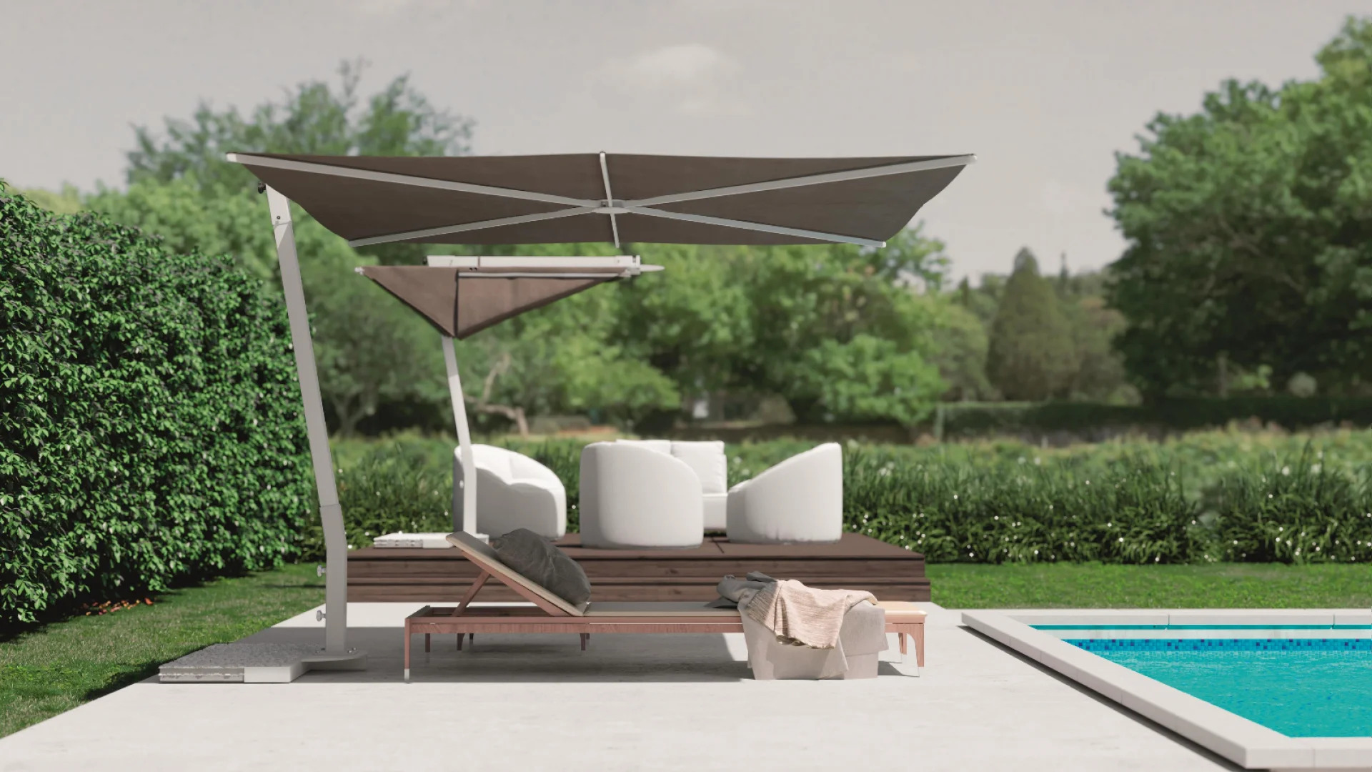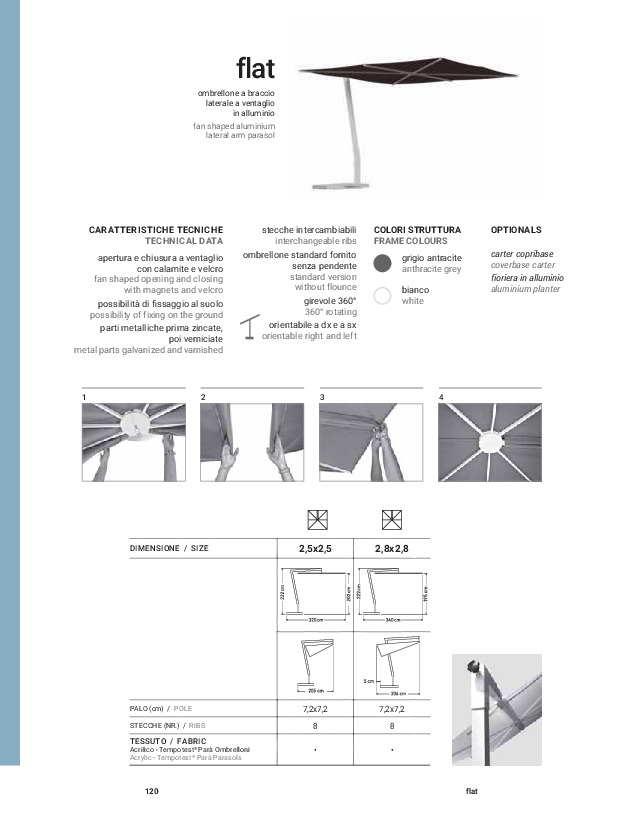 Hliníkový slnečník s bočným ramenom v tvare vejára