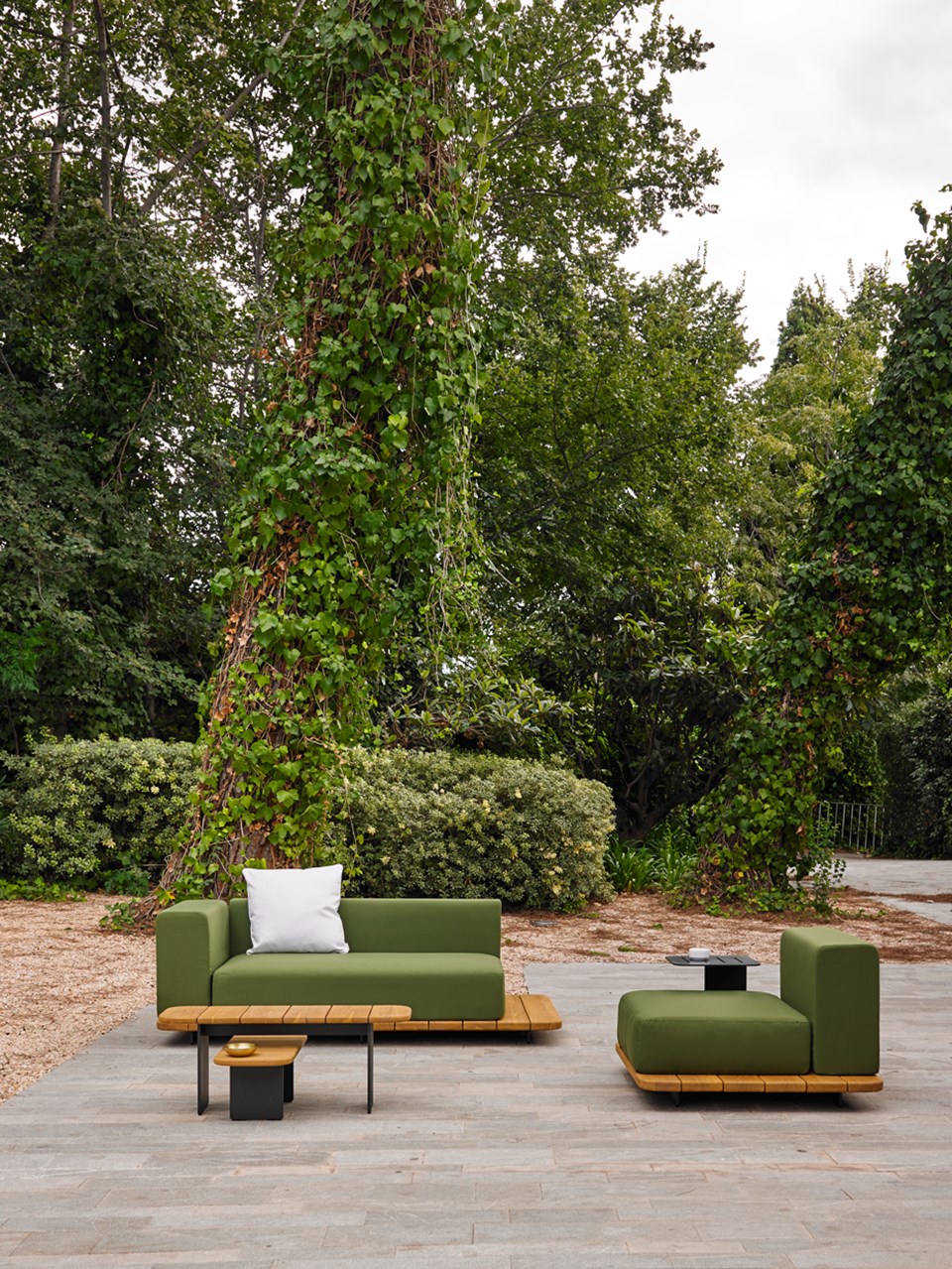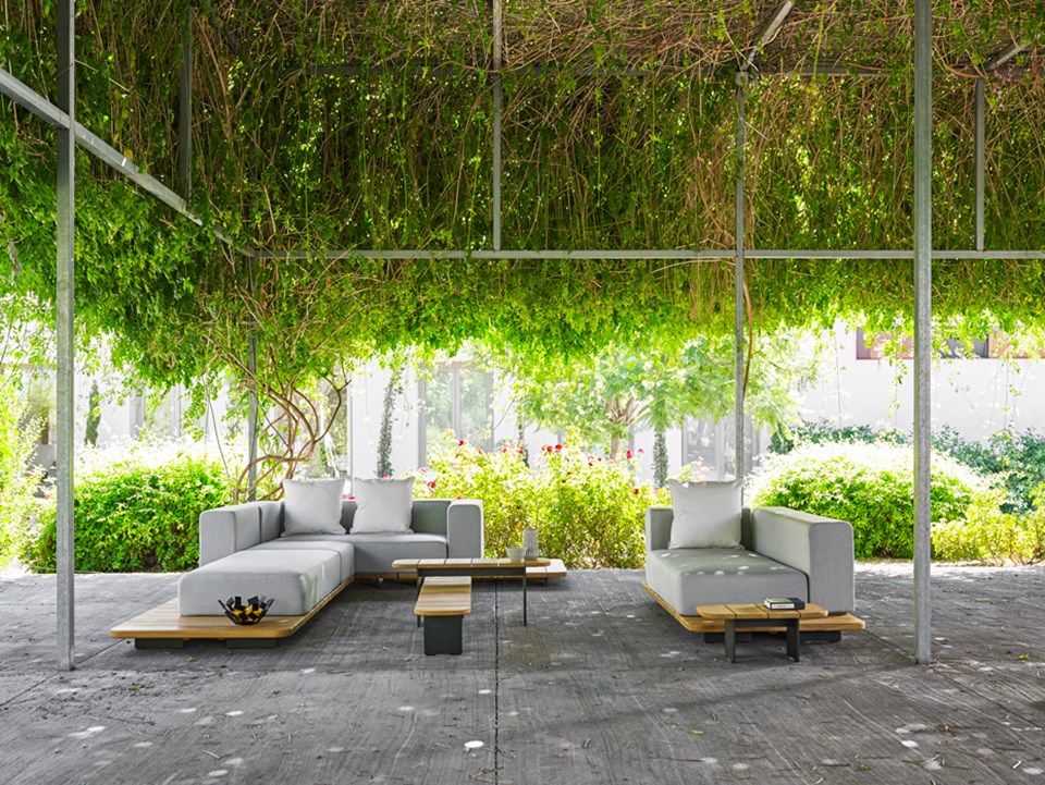 Kolekcia je architektonický kúsok zložený z niekoľkých modulov, ktoré umožňujú nekonečné konfigurácie. Pal je vyrobený zo základne z masívneho teakového dreva, ktoré vďaka nastaviteľným neviditeľným nožičkám pôsobí ako plošina mierne zdvihnutá od zeme.