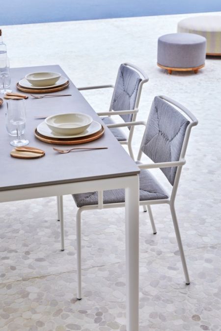 Hlavnou črtou kolekcie, ktorá pozostáva z jedálenskej stoličky a kresla, je tkané lano, ktoré má slúžiť ako pocta remeselnej zručnosti. Leto je novým pohľadom na tradičnú stoličku: univerzálna, jednoduchá, funkčná a nadčasová, no teraz s nádychom rafinovanosti a technickej precíznosti