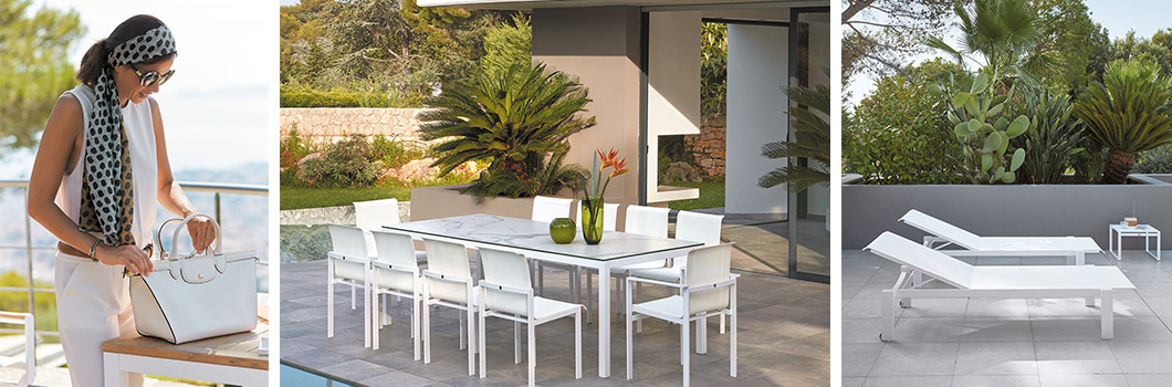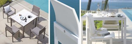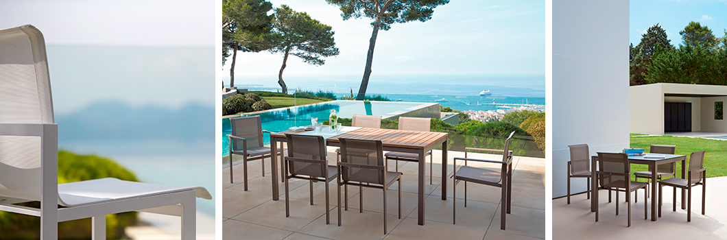 Moderná, pohodlná a ľahká najnovšia kolekcia Sifas® je dodávaná v lakovanom hliníku a plátne Textylène®, aby sa hodila do každého prostredia, či už ide o jedálenský kút alebo neformálnu obývaciu izbu.