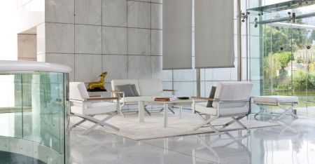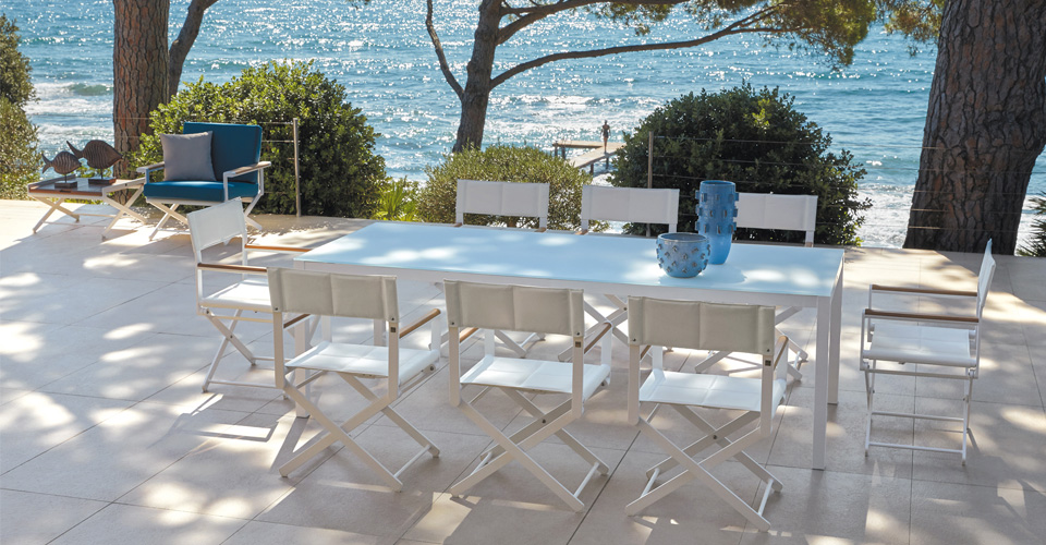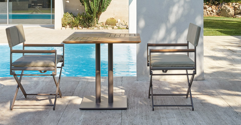 Vznešená reinterpretácia skvelého klasického a kočovného nábytku pre relaxačné a stravovacie priestory s dokonalou povrchovou úpravou z eloxovaného hliníka. Stoličky sa dodávajú v troch verziách pre sedadlá a operadlá: štandardná, komfortná a luxusná.