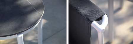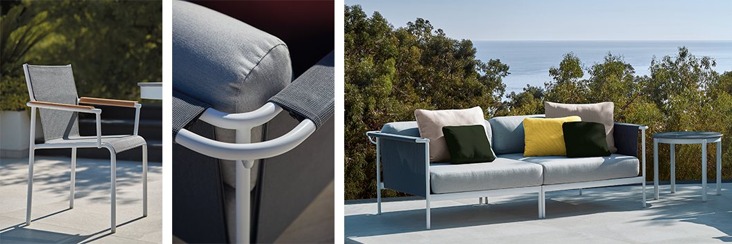 Dizajnérovi sa pri vymýšľaní kolekcie Outline podarilo zdôrazniť grafické, zdanlivo vznášajúce sa ľahké línie, a to pomocou dômyselnej a elegantnej rúrkovej konštrukcie. Použitím súhry dvojitých rúrok v horných partiách mu dokázal dodať komfort lakťovej opierky pri zvýraznení kontúr.<