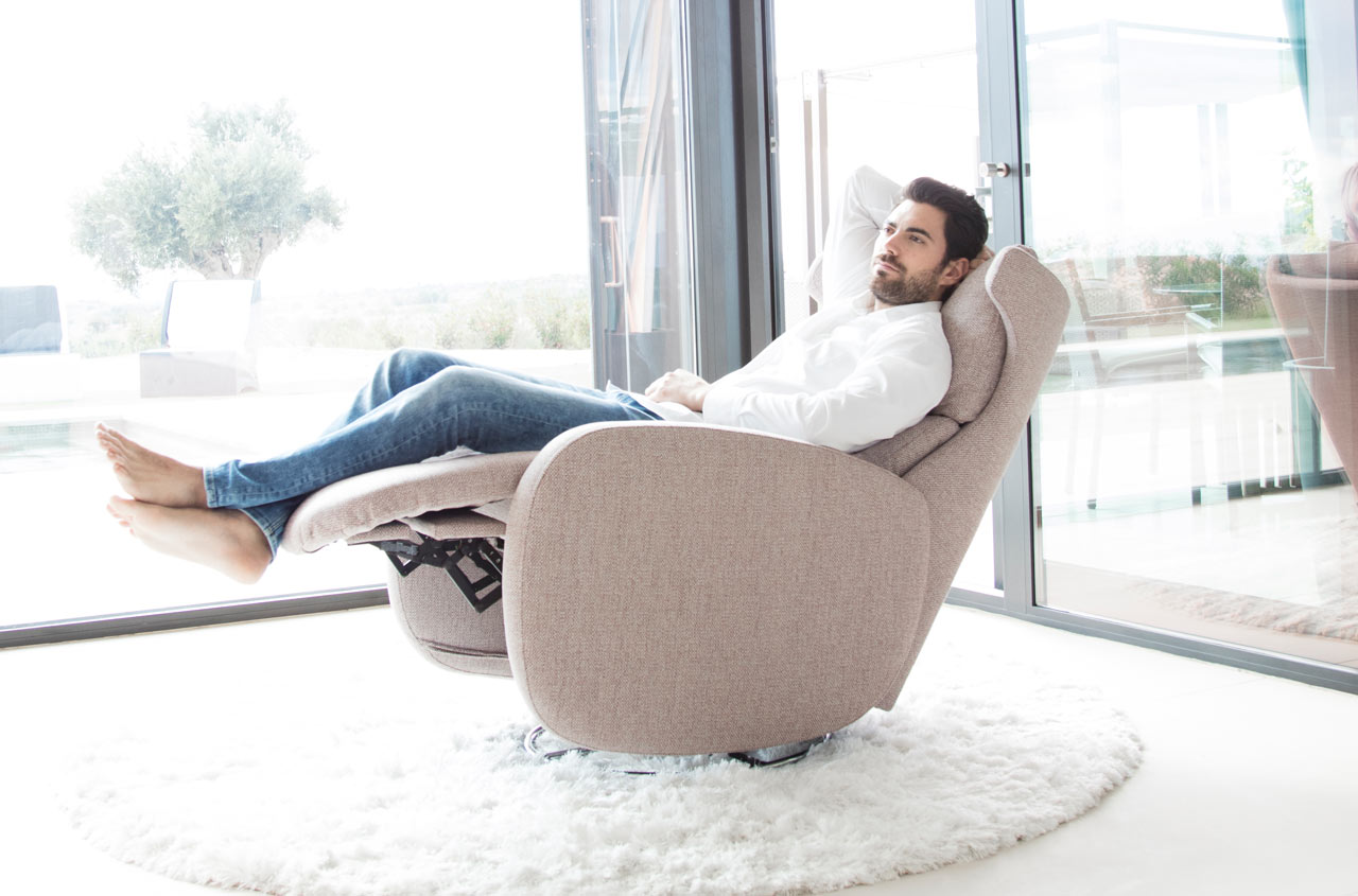 Kim je kreslo s vynikajúcim dizajnom, vizuálne ľahké a neuveriteľne pohodlné. Jeho zakrivené tvary z neho robia originálny a atraktívny dizajn, ktorý je možné kombinovať s akýmkoľvek štýlom pohovky . Je k dispozícii ako manuálne alebo motorizované kreslo, ale vždy otočné.