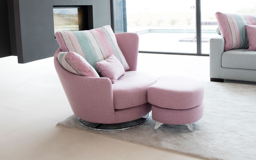 Roxane je kreslo s veľmi špeciálnym dizajnom, kde si užijete nezabudnuteľné chvíle. Jeho zakrivená zadná časť vytvára pokojnú a tichú atmosféru, ktorá vám umožní vychutnať si chvíle voľna a zabudnúť na všetko ostatné. Otočná základňa a podnožka poskytujú skvelý komfort.