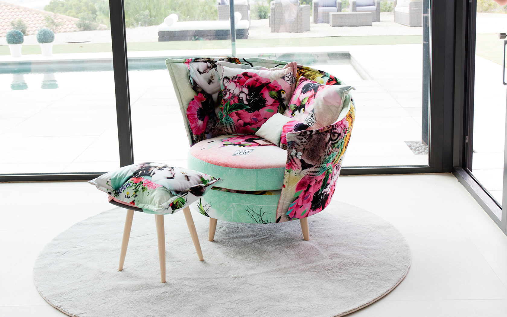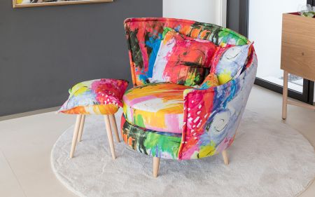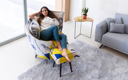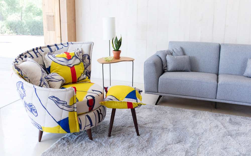 Volta sa zdvíha z podlahy na 4 naklonených nohách. Vďaka šikovnému systému sa však pohovka môže voľne natáčať. Dizajn dotvára ľahká podnožka, ktorá sa rýchlo premení na konferenčný stolík.