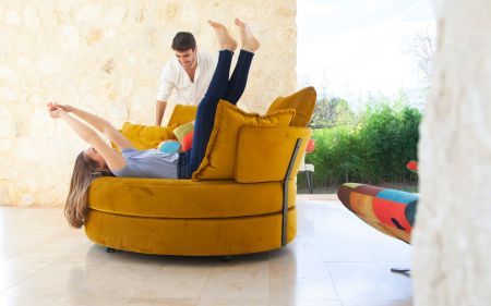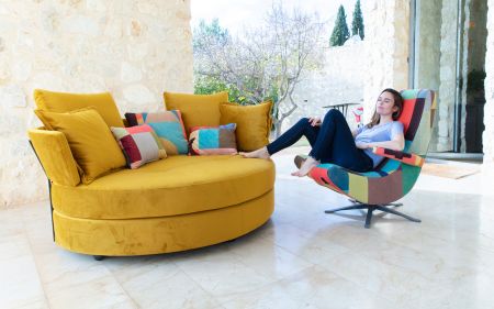 MyApple nie je ani kreslo, ani pohovka alebo ležadlo ... Je to špeciálny kúsok, inšpirovaný miestami lásky minulého storočia, ale prispôsobený súčasnej dobe. Môže sa zdať veľký, ale v skutočnosti je to kompaktný kúsok, ideálny pre malé byty. Možnosť otočenia nám umožňuje ľahkú orientáciu na rôzne časti miestnost